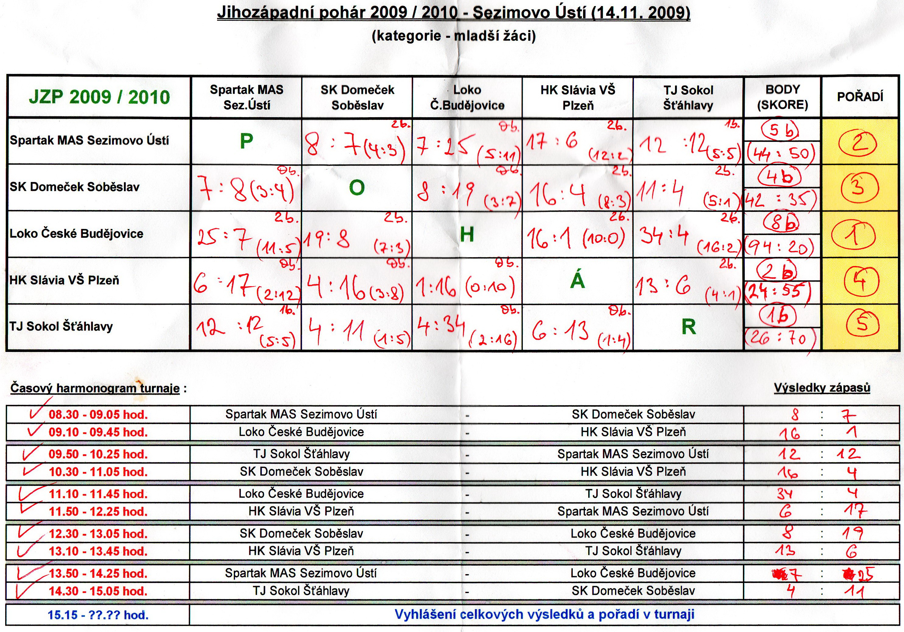 Výsledky JZP ml.žáci skup.I B - Plzeň 20.12.09 vč.pořadí po 3 turnajích